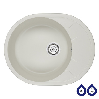 Мойка кухонная гранитная. Тип установки: врезная. Форма: овальная(реверсная). Количество чаш: 1. Наличие крыла: да. Минимальная ширина шкафа: 55 см. Отверстие под смеситель:нет. Комплектация: сифон, выпуск, перелив, сливная арматура, корзинчатый вентиль 3 " 1/2 ". Габариты мойки (ШхГхВ): 63х50х20 см. Габариты чаши (ШхГхВ): D 45х20 см. Цвет изделия: черный.
