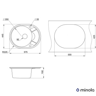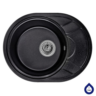 Мойка кухонная гранитная. Тип установки: врезная. Форма: овальная(реверсная). Количество чаш: 1. Наличие крыла: да. Минимальная ширина шкафа: 45 см. Отверстие под смеситель:нет. Комплектация: сифон, выпуск, перелив, сливная арматура, корзинчатый вентиль 3 " 1/2 ". Габариты мойки (ШхГхВ): 57,5х44,5х19 см. Габариты чаши (ШхГхВ): D 35х19 см. Цвет изделия: антрацит (металлик).