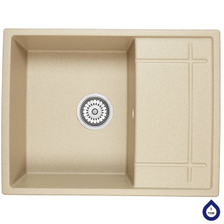 Мойка кухонная гранитная. Тип установки: врезная. Форма: прямоугольная(реверсная). Количество чаш: 1. Наличие крыла: да. Минимальная ширина шкафа: 50 см. Отверстие под смеситель:нет. Комплектация: сифон, выпуск, перелив, сливная арматура, корзинчатый вентиль 3 " 1/2 ". Габариты мойки (ШхГхВ): 80х49х19,5 см. Габариты чаши (ШхГхВ): 35,5х41х19,5 см. Цвет изделия: песок.