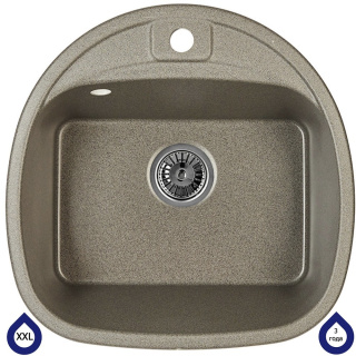 Мийка кухонна гранітна. Тип установки: врізна. Форма: кругла. Кількість чаш: 1. Наявність крила: немає. Мінімальна ширина шафи: 50 см. Отвір під змішувач: є. Комплектація: сифон, випуск, перелив, зливна арматура, корзинчатий вентиль 3 "1/2". Габарити мийки (ШхГхВ): D 53х49х17,5 см. Габарити чаші (ШхГхВ): D 38,5х17,5 см. Колір виробу: базальт