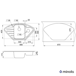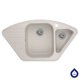 Мойка кухонная гранитная. Тип установки: врезная. Форма: трапецивидная. Количество чаш: 1,5. Наличие крыла: да. Минимальная ширина шкафа: 80 см. Отверстие под смеситель:есть. Комплектация: сифон, выпуск, перелив, сливная арматура, корзинчатый вентиль 3 " 1/2 ". Габариты мойки (ШхГхВ): 89х49х17,5 см. Габариты 1-ой чаши (ШхГхВ): 34х40,5х17,5 см., Габариты 2-ой чаши (ШхГхВ): 21х28х14, Цвет изделия: эспрессо.
