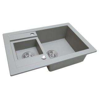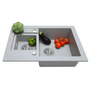 Мийка кухонна гранітна. Тип установки: врізна. Форма: прямокутна. Кількість чаш: 1,5. Наявність крила: немає. Мінімальна ширина шафи: 60 см. Отвір під змішувач: є. Pop-up система. Комплектація італійського виробництва (FISCITALIANA): сифон, випуск, перелив, зливна арматура, корзинчатий вентиль 3 "1/2" (металева втулка, металева гайка), що фіксують затискачі. Габарити мийки (ШхГхВ): 67х46х18,4 см. Габарити чаші (ШхГхВ): 34х37х17см, габарити додаткової чаші (ШхГхВ): 20х20х11,5 см. колір виробу: сірий металік. Вдала комбінація красивого зовнішнього вигляду і міцності кухонної гранітної мийки Perfelli притягує своєю безпристрасністю та легкістю. Кожна модель Perfelli - натхненна Італією і призначена для Вашого комфорту в просторі створення смаку і улюблених кулінарних шедеврів. Гранітна мийка складається тільки з натуральних і абсолютно екологічних матеріалів, що ніяким чином не вплине на ваше здоров'я. Вони гігієнічні і екологічно безпечні, не дивлячись на те, що до складу крім 80% гранітної крихти входить 20% іншого сполучного полімеру (смола). За такими мийками легко доглядати. Згодом вони не втрачають свого зовнішнього вигляду в процесі експлуатації, а також вони стійкі до високих температур (до 280 С). Даний варіант підійде для будь-якого інтер'єрного рішення, особливо якщо збігається з кольором робочої поверхні. А якщо ж ця модель не підходить для вашої кухні через деякі критерії - у нас є безліч інших фасонів, кольорів, форм і розмірів в нашому каталозі.