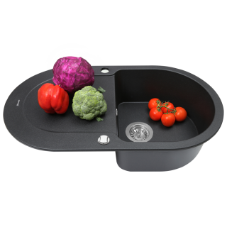 Мийка кухонна гранітна. Тип установки: врізна. Форма: овальна. Кількість чаш: 1. Наявність крила: є. Мінімальна ширина шафи: 45 см. Отвір під змішувач: є. Pop-up система. Комплектація італійського виробництва (FISCITALIANA): сифон, випуск, перелив, зливна арматура, кошикоподібний вентиль 3 "1/2" (металева втулка, металева гайка), що фіксують затискачі. Габарити мийки (ШхГхВ): 78х44х19,4 см. Габарити чаші (ШхГхВ): 35х38х18 см. Колір виробу: білий. Вдала комбінація красивого зовнішнього вигляду і міцності кухонної гранітної мийки Perfelli притягує своєю безпристрасністю та легкістю. Кожна модель Perfelli - натхненна Італією і призначена для вашого комфорту в просторі створення смаку і улюблених кулінарних шедеврів. Гранітна мийка складається тільки з натуральних і абсолютно екологічних матеріалів, що ніяким чином не вплине на ваше здоров'я. Вони гігієнічні і екологічно безпечні, не дивлячись на те, що до складу крім 80% гранітної крихти входить 20% іншого сполучного полімеру (смола). За такими мийками легко доглядати. Згодом вони не втрачають свого зовнішнього вигляду в процесі експлуатації, а також вони стійкі до високих температур (до 280 С). Даний варіант підійде для будь-якого інтер'єрного рішення, особливо якщо збігається з кольором робочої поверхні. А якщо ж ця модель не підходить для вашої кухні через деякі критерії - у нас є безліч інших фасонів, кольорів, форм і розмірів в нашому каталозі.