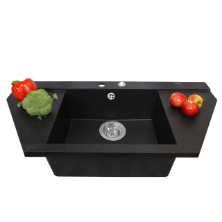 Мийка кухонна гранітна. Тип установки: врізна. Форма: трапецієвидна. Кількість чаш: 1. Наявність крила: є. Мінімальна ширина шафи: 50 см. Отвір під змішувач: є. Pop-up система. Комплектація італійського виробництва (FISCITALIANA): сифон, випуск, перелив, зливна арматура, корзинчатий вентиль 3 "1/2" (металева втулка, металева гайка), що фіксують затискачі. Габарити мийки (ШхГхВ): 96х51х19,4 см. Габарити чаші (ШхГхВ): 45х39x18 см. Колір виробу: сірий металік. Вдала комбінація красивого зовнішнього вигляду і міцності кухонної гранітної мийки Perfelli притягує своєю безпристрасністю та легкістю. Кожна модель Perfelli - натхненна Італією і призначена для Вашого комфорту в просторі створення смаку і улюблених кулінарних шедеврів. Гранітна мийка складається тільки з натуральних і абсолютно екологічних матеріалів, що ніяким чином не вплине на ваше здоров'я. Вони гігієнічні і екологічно безпечні, не дивлячись на те, що до складу крім 80% гранітної крихти входить 20% іншого сполучного полімеру (смола). За такими мийками легко доглядати. Згодом вони не втрачають свого зовнішнього вигляду в процесі експлуатації, а також вони стійкі до високих температур (до 280 С). Даний варіант підійде для будь-якого інтер'єрного рішення, особливо якщо збігається з кольором робочої поверхні. А якщо ж ця модель не підходить для вашої кухні через деякі критерії - у нас є безліч інших фасонів, кольорів, форм і розмірів в нашому каталозі.