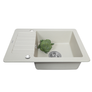 Мийка кухонна гранітна. Тип установки: врізна. Форма: прямокутна. Кількість чаш: 1. Наявність крила: є. Мінімальна ширина шафи: 45 см. Отвір під змішувач: є. Комплектація італійського виробництва (FISCITALIANA): сифон, випуск, перелив, зливна арматура, корзинчатий вентиль 3 "1/2" (металева втулка, металева гайка), що фіксують затискачі. Габарити мийки (ШхГхВ): 58х44х16,3 см. Габарити чаші (ШхГхВ): 34х36х15 см. Колір виробу: світло-бежевий. Вдала комбінація красивого зовнішнього вигляду і міцності кухонної гранітної мийки Perfelli притягує своєю безпристрасністю та легкістю. Кожна модель Perfelli - натхненна Італією і призначена для Вашого комфорту в просторі створення смаку і улюблених кулінарних шедеврів. Гранітна мийка складається тільки з натуральних і абсолютно екологічних матеріалів, що ніяким чином не вплине на ваше здоров'я. Вони гігієнічні і екологічно безпечні, не дивлячись на те, що до складу крім 80% гранітної крихти входить 20% іншого сполучного полімеру (смола). За такими мийками легко доглядати. Згодом вони не втрачають свого зовнішнього вигляду в процесі експлуатації, а також вони стійкі до високих температур (до 280 С). Даний варіант підійде для будь-якого інтер'єрного рішення, особливо якщо збігається з кольором робочої поверхні. А якщо ж ця модель не підходить для вашої кухні через деякі критерії - у нас є безліч інших фасонів, кольорів, форм і розмірів в нашому каталозі.