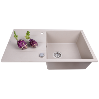 Мийка кухонна гранітна. Тип установки: врізна. Форма: прямокутна. Кількість чаш: 1. Наявність крила: є. Мінімальна ширина шафи: 45 см. Отвір під змішувач: є. Pop-up система. Комплектація італійського виробництва (FISCITALIANA): сифон, випуск, перелив, зливна арматура, кошикоподібний вентиль 3 "1/2" (металева втулка, металева гайка), що фіксують затискачі. Габарити мийки (ШхГхВ): 86х50х21 см. Габарити чаші (ШхГхВ): 44х43х19,6 см. Колір виробу: білий. Вдала комбінація красивого зовнішнього вигляду і міцності кухонної гранітної мийки Perfelli притягує своєю безпристрасністю та легкістю. Кожна модель Perfelli - натхненна Італією і призначена для вашого комфорту в просторі створення смаку і улюблених кулінарних шедеврів. Гранітна мийка складається тільки з натуральних і абсолютно екологічних матеріалів, що ніяким чином не вплине на ваше здоров'я. Вони гігієнічні і екологічно безпечні, не дивлячись на те, що до складу крім 80% гранітної крихти входить 20% іншого сполучного полімеру (смола). За такими мийками легко доглядати. Згодом вони не втрачають свого зовнішнього вигляду в процесі експлуатації, а також вони стійкі до високих температур (до 280 С). Даний варіант підійде для будь-якого інтер'єрного рішення, особливо якщо збігається з кольором робочої поверхні. А якщо ж ця модель не підходить для вашої кухні через деякі критерії - у нас є безліч інших фасонів, кольорів, форм і розмірів в нашому каталозі.