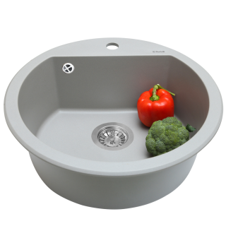 Мийка кухонна гранітна. Тип установки: врізна. Форма: кругла. Кількість чаш: 1. Наявність крила: немає. Мінімальна ширина шафи: 50 см. Отвір під змішувач: є. Pop-up система. Комплектація італійського виробництва (FISCITALIANA): сифон, випуск, перелив, зливна арматура, корзинчатий вентиль 3 "1/2" (металева втулка, металева гайка), що фіксують затискачі. Габарити мийки (ШхГхВ): 51х51х19,4 см. Габарити чаші (ШхГхВ): 38х 44,5 х18 см. Колір виробу: сірий металік. Вдала комбінація красивого зовнішнього вигляду і міцності кухонної гранітної мийки Perfelli притягує своєю безпристрасністю та легкістю. Кожна модель Perfelli - натхненна Італією і призначена для Вашого комфорту в просторі створення смаку і улюблених кулінарних шедеврів. Гранітна мийка складається тільки з натуральних і абсолютно екологічних матеріалів, що ніяким чином не вплине на ваше здоров'я. Вони гігієнічні і екологічно безпечні, не дивлячись на те, що до складу крім 80% гранітної крихти входить 20% іншого сполучного полімеру (смола). За такими мийками легко доглядати. Згодом вони не втрачають свого зовнішнього вигляду в процесі експлуатації, а також вони стійкі до високих температур (до 280 С). Даний варіант підійде для будь-якого інтер'єрного рішення, особливо якщо збігається з кольором робочої поверхні. А якщо ж ця модель не підходить для вашої кухні через деякі критерії - у нас є безліч інших фасонів, кольорів, форм і розмірів в нашому каталозі.