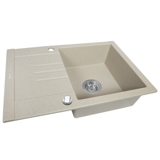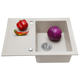 Мийка кухонна гранітна. Тип установки: врізна. Форма: прямокутна. Кількість чаш: 1. Наявність крила: є. Мінімальна ширина шафи: 45 см. Отвір під змішувач: є. Pop-up система. Комплектація італійського виробництва (FISCITALIANA): сифон, випуск, перелив, зливна арматура, корзинчатий вентиль 3 "1/2" (металева втулка, металева гайка), що фіксують затискачі. Габарити мийки (ШхГхВ): 66х44х17 см. Габарити чаші (ШхГхВ): 34х37х16,2 см. Колір виробу: білий. Вдала комбінація красивого зовнішнього вигляду і міцності кухонної гранітної мийки Perfelli притягує своєю безпристрасністю та легкістю. Кожна модель Perfelli - натхненна Італією і призначена для вашого комфорту в просторі створення смаку і улюблених кулінарних шедеврів. Гранітна мийка складається тільки з натуральних і абсолютно екологічних матеріалів, що ніяким чином не вплине на ваше здоров'я. Вони гігієнічні і екологічно безпечні, не дивлячись на те, що до складу крім 80% гранітної крихти входить 20% іншого сполучного полімеру (смола). За такими мийками легко доглядати. Згодом вони не втрачають свого зовнішнього вигляду в процесі експлуатації, а також вони стійкі до високих температур (до 280 С). Даний варіант підійде для будь-якого інтер'єрного рішення, особливо якщо збігається з кольором робочої поверхні. А якщо ж ця модель не підходить для вашої кухні через деякі критерії - у нас є безліч інших фасонів, кольорів, форм і розмірів в нашому каталозі.