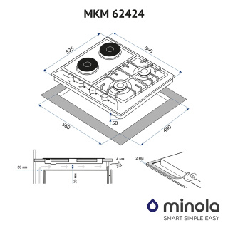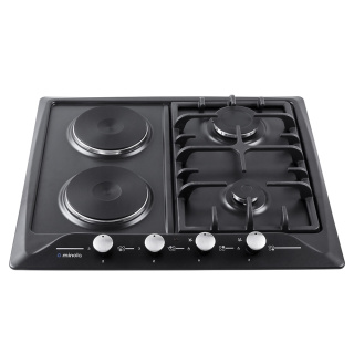 Варильна поверхня газо-електрична, колір-білий, матеріал - емальований метал, ширина 60 см, 2 газові конфорки + 2 електричні, газ-контроль, електрозапалювання в ручках управління, чавунні решітки, фронтальна панель управління, перехідники (жиклери) на балонний газ Комбінована варильна поверхняMinola MKM 62424оснащена двома газовими пальниками та двома електричними. Панель наділена функцією електрозапалювання в ручках управління та системою-безпеки "газ-контроль" - для вашої зручності в приготуванні страви. Ергономічне розташування пальників забезпечує додатковий комфорт при використанні декількох зон одночасно. Приготування страв паралельно на газу і електриці є одним з інноваційних способів. Так як цей спосіб буде не тільки зручним, але і раціональним - він буде заощаджувати не тільки ваш час, але і електроенергію в будинку. Також великим плюсом будуть довговічні і стійкі до деформації чавунні решітки. Вони знімні і легко очищаються.