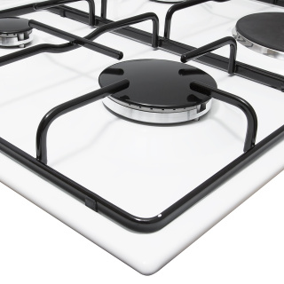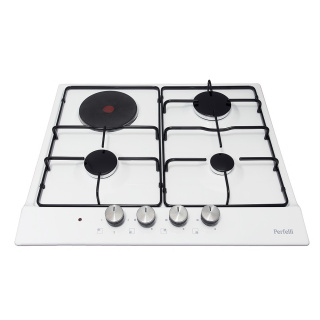 Варильна поверхня газово-електрична, колір - біла емаль, ширина 60см, 3 газових конфорки SABAF + 1 E.G.O електрична швидкого нагріву, електрозапалювання в ручках управління, емальовані решітки, фронтальна панель управління Дивовижна комбінація трьох газових конфорок SABAF з одним електричним млинцем E.G.O швидкого нагріву в варильній поверхні HKM 630. Панель наділена функцієюелектрозапалювання в ручках управліннята італійськими конфорками SABAF - для вашої зручності в приготуванні страви. Ергономічне розташування пальників забезпечує додатковий комфорт при використанні декількох зон одночасно. Приготування страв паралельно на газу і електриці є одним з інноваційних способів. Так як цей спосіб буде не тільки зручним, але і раціональним - він буде заощаджувати не тільки ваш час, алей електроенергію в будинку. Також великим плюсом будуть довговічні і стійкі до деформації емальовані решітки. Вони знімніта легко очищаються.