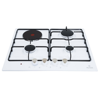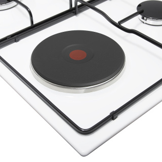 Варильна поверхня газово-електрична, колір - біла емаль, ширина 60см, 3 газових конфорки SABAF + 1 E.G.O електрична швидкого нагріву, електрозапалювання в ручках управління, газ-контроль, емальовані решітки, фронтальна панель управління Дивовижна комбінація трьох газових конфорок SABAF з одним електричним млинцем E.G.O швидкого нагріву в варильній поверхніHKM 631. Панель наділена функцієюелектрозапалювання в ручках управління, системою безпеки "газ-контроль"таіталійськими конфорками SABAF - для вашої зручності в приготуванні страви. Ергономічне розташування пальників забезпечує додатковий комфорт при використанні декількох зон одночасно. Приготування страв паралельно на газутаелектриці є одним з інноваційних способів. Так як цей спосіб буде не тільки зручним, алейраціональним - він буде заощаджувати не тільки ваш час, але і електроенергію в будинку. Також великим плюсом будуть довговічні і стійкі до деформації емальовані решітки. Вони знімніталегко очищаються.