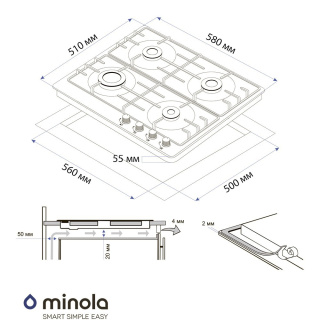 Газова варильна поверхня, колір білий, матеріал - емальований метал, ширина 60см, 4 газові конфорки SABAF, електрозапалювання в ручках управління, емальовані решітки, фронтальна панель управління Створювати кулінарні шедеври на поверхніMinola MGM 61011- легко. Прилад обладнанфункцією електрозапалювання в ручках управління таіталійськими конфорками SABAF - для вашої зручності в приготуванні страви. Ергономічне розташування пальників забезпечує додатковий комфорт при використанні декількох зон одночасно. Також великим плюсом будуть довговічні і стійкі до деформації чавунні решітки в кількості двох штук. Вони знімаються та легко очищаються.