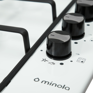 Газова варильна поверхня, колір-білий, матеріал - емальований метал, ширина 60см, 4 газові конфорки SABAF, електрозапалювання в ручках управління, емальовані решітки з матовим покриттям, ручки управління з жароміцного матеріалу, розсікачі - 3 мм, жиклери (Made in France), бічна панель управління. Варильна поверхня Minola MGM 61113 оснащена чотирма італійськими газовими пальниками SABAF. Панель обладнана функцією електрозапалювання в ручках управління і жиклерами французького виробництва - для вашої зручності в приготуванні страви. Ергономічне розташування пальників забезпечує додатковий комфорт при використанні декількох зон одночасно. Також великим плюсом будуть довговічні і стійкі до деформації емальовані решітки з матовим покриттям. Вони легко знімаються та очищаються.