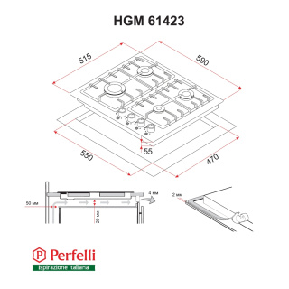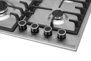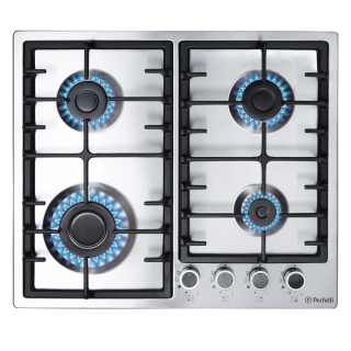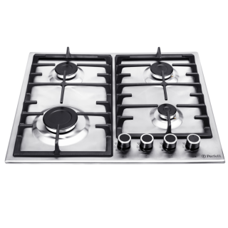 Газова варильна поверхня, колір - сталевий, матеріал - нержавіюча сталь AISI 304, ширина 59см, 4 газові конфорки SABAF, газо- контроль, електрозапалювання в ручках управління, чавунні решітки, фронтально - кутова панель управління, ручки управління з жароміцного матеріалу, розсікачі - 3 мм, перехідники (жиклери) на балонний газ (Made in France). Поверхня Perfelli HGM 61423 I - техніка, яка надихає. Газова варильна поверхня виконана з харчової нержавіючої сталі AISI 304 високої якості, яка відрізняється не тільки своєю жароміцністю і стійкостю до корозії, а також своїм привабливим і естетичним виглядом, що прийде по душі будь-якому кулінару. Панель наділена функцією електрозапалювання в ручках управління, системою безпеки "газ-контроль" та італійськими конфорками SABAF - для вашої зручності в приготуванні страви. Ергономічне розташування пальників забезпечує додатковий комфорт при використанні декількох зон одночасно. Також великим плюсом будуть довговічні і стійкі до деформації чавунні решітки в кількості двох штук. Вони знімні і легко очищаються. Поворотні перемикачі виконані з термостійкого полімеру, а поверх покриті металом.