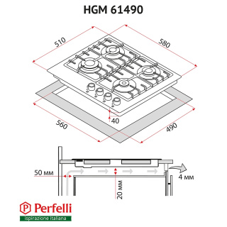 Газова варильна поверхня, колір - білий, матеріал - емальований метал, ширина 60см, 4 газові конфорки SABAF, газ-контроль, електрозапалювання в ручках управління, чавунні решітки, фронтальна панель управління, перехідники (жиклери) на балонний газ ПоверхняPerfelli HGM 61490- техніка, яка надихає. Газова варильна поверхня виконана з емальованого металу високої якості, яка відрізняється не тільки своєю жароміцністю, а також своїм привабливим і естетичним виглядом, що прийде по душі будь-якому кулінарові. Панель наділена функцієюелектрозапалювання в ручках управління, системоюбезпеки "газ-контроль"таіталійськими конфорками SABAF - для вашої зручності в приготуванні страви. Ергономічне розташування пальників забезпечує додатковий комфорт при використанні декількох зон одночасно. Також великим плюсом будуть довговічні і стійкі до деформації чавунні решітки в кількості двох штук. Вони легко знімаються таочищаються. Поворотні перемикачі виконані з термостійкого полімеру, а поверх покриті металом. За рахунок своєї ребристої поверхні вони будуть кращевідчуватися в руці і не будуть ковзати при перемиканні потужності газу.