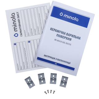 При купівлі склокерамічної варильної поверхні Minola у нашому офіційному інтернет-магазині: MINOLA, фірмовий скребок для догляду за склокерамікою — у подарунок. Варильна поверхня індукціоннная, матеріал - склокераміка Kanger, колір - чорний із золотистою серіографії, дизайн - Rustic, ширина - 60 см, 4 конфорки (2x210 мм 2200/2600 Вт, 2x160 мм 1400/2000 Вт), BOOSTER (всі зони нагрівання), 9 ступенів потужності, сенсорне управління, таймер, автоотключение, функція Stop and Go, захист від дітей, індикатор залишкового тепла, розпізнавання посуду, захист від переливу, фронтальне розташування панелі управління. Дизайн в стилі RUSTIC є європейським аналогом американського стилю кантрі з невеликими відмінностями. Він досить простий і грубуватий, але в комбінації з дерев'яним гарнітуром та іншими аксесуарами він перетворить вашу кухню і додасть їй надзвичайного стилю. Міцна склокерамічна поверхня MI 60420 RUSTIC дозволить повною мірою насолодитися приготуванням улюбленої страви. Панель оснащена жаростійкої склокерамікою Kanger, таймером на кожну зону - до 99 хв., автовідключенням поверхні по закінченню виставленого часу, захистом від дітей, індикатором залишкового тепла, режимом BOOSTER на всіх зонах, розпізнаванням посуду і захистом від переливу. Також завдяки 9-ти ступенях потужності нагріву, можна легше виставити необхідну для вашої страви температуру і також легко її зменшити або збільшити. Так як поверхня індукційна - ви не обпалитеся об включену зону нагріву, що позбавить вас від зайвого клопоту івбереже вас і ваших близьких.