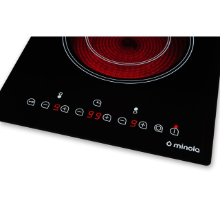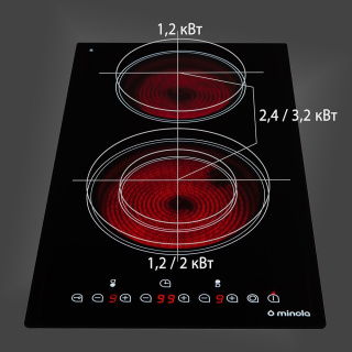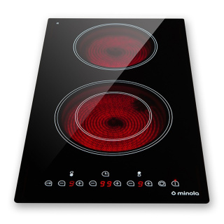 Варильна поверхня склокерамічна Domino, матеріал - склокераміка Kanger, колір-чорний, ширина - 30см, 2 зони Hi-Light (165 мм-1200Вт, зона з розширенням 130/200 мм 1200/2000 Вт), подвійна зона розширення, 9 ступенів потужності, сенсорне управління, автовідключення, захист від дітей, індикатор залишкового тепла, таймер на кожну зону - до 99 хв., захист від переливу, фронтальне розташування панелі управління Міцна склокерамічна поверхня MVH 3242 дозволить повною мірою насолодитися приготуванням улюбленої страви. Панель оснащена жаростійкою склокерамікою Kanger, таймером на кожну зону - до 99 хв., автовідключенням поверхні по закінченню виставленого часу, захистом від дітей, індикатором залишкового тепла і захистом від переливу. Також завдяки 9-ти ступеням потужності нагріву, можна легше виставити необхідну для вашої страви температуру і також легко її зменшити або збільшити. Чутливе сенсорне управління посприяє м'якому і плавному переключенню. Зона з розширенням дозволить використовувати посуд з великим діаметром, або ж зменшувати зону для маленького посуду економлячи при цьому електроенергію.