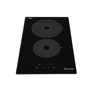 MADE IN FRANCE !!! Варильна поверхня склокерамічна Domino, матеріал - склокераміка EUROKERA, колір - чорний, ширина - 31см, 2 конфорки Hi-Light (165мм- 1200Вт, 200мм- 1800 Вт), 9 ступенів потужності, сенсорне управління, автовідключення, захист від дітей, індикатор залишкового тепла , енергоспоживання в режимі очікування 0,5 Вт, фронтальне розташування панелі управління, кабель Італійська кухня – компактна, стильна та затишна. Саме до такої кухні ідеально пасуватиме склокерамічна поверхня Perfelli VH 3103. Поєднання сучасного дизайну та класичної європейської якості пристрою дозволить Вам готувати будь-які улюблені страви з особливою легкістю. Автоматичне приготування їжі Усі конфорки склокерамічної варильної поверхні Perfelli VH 3103 оснащені функцією автоматичного приготування їжі. За допомогою даної функції, при ввімкненні конфорок, вони працюють на повній потужності, а після того автоматично її знижують до раніше заданого рівня. Найкращі матеріали Варильна поверхня Perfelli комплектується французьким керамічним склом EUROKERA. Даний матеріал стійкий до перепадів температур та високого ступеня статичного навантаження. Крім того, прилад обладнаний нагріваючими елементами та панеллю управління німецького виробника E.G.O, що дозволяє гарантувати найвищу якість продукції Perfelli. Perfelli – побутова техніка як витвір мистецтва!