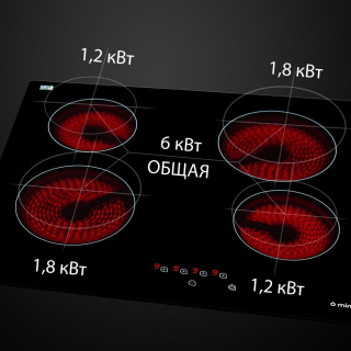 MADE IN FRANCE !!! Варильна поверхня склокерамічна, матеріал - склокераміка EUROKERA, колір - чорний, ширина - 59см, 4 конфорки Hi-Light (2х155 мм-1200Вт, 2х190мм-1800 Вт), 9 ступенів потужності, сенсорне управління, автовідключення, захист від дітей, індикатор залишкового тепла , енергоспоживання в режимі очікування 0,5 Вт, фронтальне розташування панелі управління Міцна склокерамічна поверхня MVH 6040 RBL дозволить повною мірою насолодитися приготуванням улюбленої страви. Панель оснащена жаростійкою склокерамікою EUROKERA виробленою у Франції, автовідключенням, захистом від дітей, а також індикатором залишкового тепла. Завдяки 9-ти ступеням потужності нагріву, можна легше виставити необхідну для вашої страви температуру, а такожлегко її зменшити або збільшити. Чутливесенсорне керування дозволяє з легкістю перемикати режими без особливих зусиль.