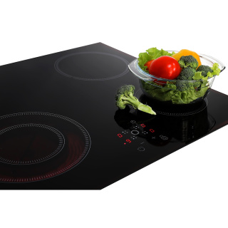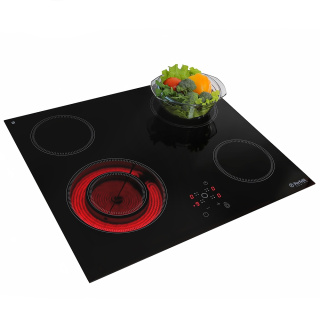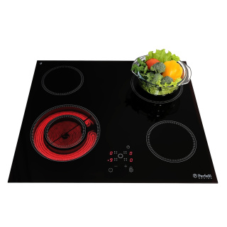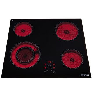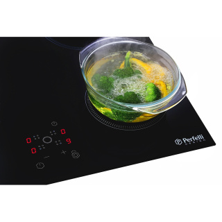 MADE IN ITALY !!! Варильна поверхня склокерамічна, матеріал - склокераміка EUROKERA, колір-чорний, ширина - 60см, 4 конфорки Hi-Light (210мм / 120 мм-2100Вт / 700Вт, 145 мм-1200Вт, 180 мм-1800Вт, 145 мм-1200Вт), 9 ступенів потужності, сенсорне управління, таймер, автовідключення, захист від дітей, індикатор залишкового тепла, фронтальне розташування панелі управління, скребок в комплекті, шнур живлення Модель з розширеним функціоналом, що продовжує лінію класичних поверхонь BASSANO. Функціональні зони нагріву включають в себе конфорку з розширеною зоною нагріву - Ви можете використовувати її для двох різний діаметрів посуду і адаптувати робочий простір під Ваші потреби. Ви можете розташувати на одній варильній панелі багатоскладові кулінарні процеси - пасерувати овочі, фламбувати гарячу закуску, паралельно з приготуванням основних страв і гарнірів - можливості справжньої професійної кухні доступні для управління одним Вашим дотиком сенсорної панелі управління. Кулінарні колекції Perfelli Design - це можливість приготування страв високої кухні і сміливих кулінарних експериментів.