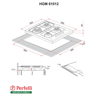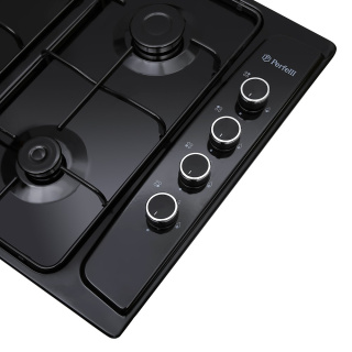 Газова варильна поверхня, колір-чорний, матеріал вручений поверхні - фарбована емаль, ширина 60см, 4 газові конфорки (1х 3000W, 2x 1750W, 1x 1000W), електрозапалювання в ручках управління, емальовані решітки, бічна панель управління Безумовне захоплення італійською культурою приховано в цій чудовій газової поверхні Perfelli HGM 61012. Варильна панель виготовлена з фарбованої емалі високої міцності. Панель наділена функцією електрозапалюванняв ручках управління, а також італійськими конфорками SABAF - для вашої зручності в приготуванні страви. Ергономічне розташування пальників забезпечує додатковий комфорт при використанні декількох зон одночасно. Також великим плюсом будуть довговічні і стійкі до деформації чавунні решітки в кількості двох штук. Вони знімні і легко очищаються. Поворотні перемикачі виконані з термостійкого полімеру, а поверх покриті металом, що надає вручений панелі додаткового вишуканості.