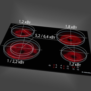 Варильна поверхня склокерамічна, матеріал - склокераміка Kanger, колір - чорний, ширина - 60см, 4 зони Hi-Light (зона з розширенням 145/230 мм-1000 / 2200Вт, 2х165 мм-1200Вт, 1х200мм-1800Вт), подвійна зона розширення, 9 ступенів потужності, сенсорне управління, автовідключення, захист від дітей, індикатор залишкового тепла, таймер на кожну зону - до 99 хв., захист від переливу, фронтально-кутове розташування панелі управління. Міцна склокерамічна поверхня MVH 6232 дозволить повною мірою насолодитися приготуванням улюбленої страви. Панель оснащена жаростійкою склокерамікою Kanger, таймером на кожну зону - до 99 хв., автовідключенням поверхні по закінченню виставленого часу, захистом від дітей, захистом від переливу, а також індикатором залишкового тепла. Завдяки 9-ти ступеням потужності нагріву, можна легше виставити необхідну для вашої страви температуру і легко її зменшити або збільшити. Чутливе сенсорне керування дозволяє з легкістю перемикати режими без особливих зусиль.