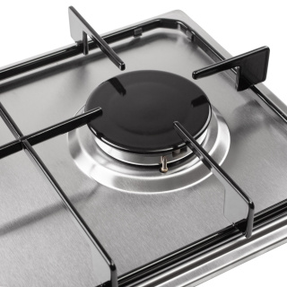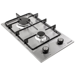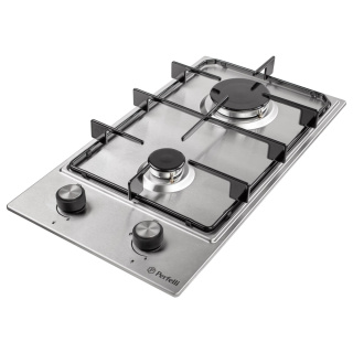 Газова варильна поверхня, колір чорний, матеріал - емальований метал, ширина 29см, кількість газових конфорок - 2, газ-контроль, електрозапалювання в ручках управління, емальований решітка, фронтальна панель управління, перехідники (жиклери) на балонний газ. Техніка Perfelli - італійська якість на вашій кухні! Компактна газова поверхня Domino на металі Perfelli HGM 31414 BL стане незамінним помічником для вас на кухні. Вона розрахована на 2 конфорки потужністю - 1 і 2.9 кВт. Основу поверхні виготовлено з емальованого металу чорного кольору. Дана модель хороший варіант для невеликої сім'ї або для дачі. Бренд Perfelli - втілення простоти використання і витонченого дизайну! Мінімалістичний дизайн і компактний розмір поверхні ідеально підійдуть для сучасного інтер'єру. Її ширина складає 29 см. Поверхню покриває емальована решітка. За рахунок своєї гладкості вона легко миється і добре підтримує посуд в стійкому положенні. З Perfelli ви в безпеці! Дана модель обладнана функцією «газ-контроль», що моментально блокує подачу газу, якщо раптом відбувається загасання полум'я в конфорці. Якісна збірка і гарантія довговічності використання! Варильна поверхня Domino на металі Perfelli HGM 31414 BL працює на природному (магістральному) газі, або ж через спеціальні перехідники кріпиться до балона і використовує балонний газ. Перехідники (жиклери) на балонний газ входять до комплекту поверхні.