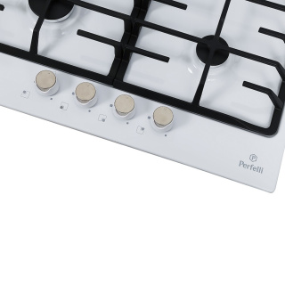 Газова варильна поверхня, колір білий, ширина 60см, 4 газові конфорки SABAF, електрозапалювання в ручках управління, газ-контроль, чавунні решітки, фронтальна панель управління Газова панельPerfelli HGM 619- техніка, яка надихає. Поверхня виконана з емальованого металу високої якості, яка відрізняється не тільки своєю жароміцністю і стійкістю до корозії, а також своїм привабливим і естетичним виглядом, що прийде по душі будь-якому кулінарові. Панель наділена функцієюелектрозапалювання в ручках управління, системою безпеки "газ-контроль", а також італійськими конфорками SABAF - для вашої зручності в приготуванні страви. Ергономічне розташування пальників забезпечує додатковий комфорт при використанні декількох зон одночасно. Також великим плюсом будуть довговічні і стійкі до деформації чавунні решітки в кількості двох штук. Вони знімні і легко очищаються. Поворотні перемикачі виконані з термостійкого полімеру, а поверх покриті металом. За рахунок своєї гладкоїповерхні вони добре легко очищаються від забруднень і жиру.