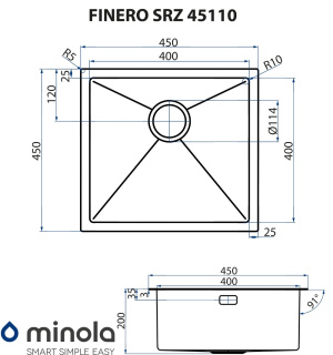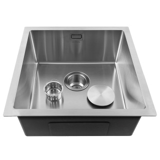 Мийка кухонна із нержавіючої сталі. Товщина сталі: 1,2 мм: Тип монтажу: виразний / накладної. Форма квадратна. Кількість чаш: 1. Наявність крила: немає. Отвір під змішувач: немає. Комплектація: кріплення, перелив, зливна арматура. Габарити мийки (ШхГхВ): 45х45х20. Габарити чаші (ШхГхВ): 40х40х20. Радіус заокруглення кутів чаші - 10. Колір виробу: нержавіюча сталь. *Аксесуари не входять в комплектацію. Під аксесуарами маються на увазі товари:кошик для кухонних мийок Арт. МВ0002,кошик для кухонних мийок Арт. МВ0001,килимок для сушки Арт. MDM0003,дозатор для милаАрт. MS0005.