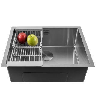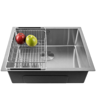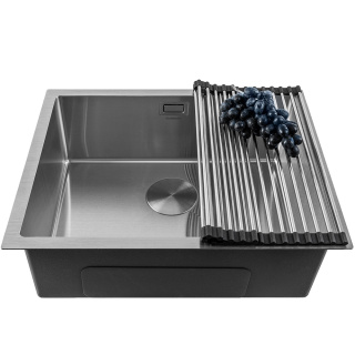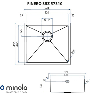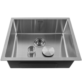 Мийка кухонна із нержавіючої сталі. Товщина сталі: 1,2 мм: Тип монтажу: виразний / накладної. Форма прямокутна. Кількість чаш: 1. Наявність крила: немає. Отвір під змішувач: немає. Комплектація: кріплення, перелив, зливна арматура. Габарити мийки (ШхГхВ): 57х45х20. Габарити чаші (ШхГхВ): 52х40х20. Радіус заокруглення кутів чаші - 10. Колір виробу: нержавіюча сталь. *Аксесуари не входять в комплектацію. Під аксесуарами маються на увазі товари:кошик для кухонних мийок Арт. МВ0002,кошик для кухонних мийок Арт. МВ0001,килимок для сушки Арт. MDM0003,дозатор для милаАрт. MS0005.