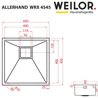Кухонні мийкиWeilorдосить різноманітні за зовнішнім виглядом і своїми функціональними особливостями. Їх можна пристосувати під будь-яке інтер'єрне рішення, будь-то хай-тек або ретро, а завдяки своїй функціональній особливості - вони стануть незамінними помічниками на вашій кухні. Також деякі аксесуари допоможуть спростити експлуатацію кухонної мийки. Вони полегшать всі побутові процеси, будь-то промивка овочів або ж просушування посуду. *Аксесуари не входять до комплектації. Під аксесуарами маються на увазі товари: дозатор для мила для кухонних мийок Chic WDS-DG300 , килимок для сушки Chic WFM-4432 , корзинка для кухонних мийок Chic WFB-3021 , корзинка для кухонних мийок Chic WFB-3525 , корзинка для сушки Chic WDB-4265 . Матеріал Високоякісна харчова нержавіюча сталь європейського стандарту AISI 304 (18/10), що містить в собі 18% хрому і 10% нікелю - визнана еталоном на професійних кухнях по всьому світу і використовується для забезпечення найкращих характеристик кожного виробу ТМ "Weilor". Кухонна мийка з нержавіючої сталі підходить до будь-якого дизайнерського рішення, має великий обсяг і максимально корисну площу дна чаші. В процесі експлуатації виріб не накопичує шкідливих бактерій, тому воно є абсолютно безпечним. Хромонікелевий сплав надає мийкам антикорозійну якість, блиск та стійкість. Мийка з нержавіючої сталі не вимагає використання додаткових засобів для особливого догляду за виробом. Якість і щільність сталі Кухонні мийки ТМ "Weilor" виготовляються з преміальних матеріалів, для забезпечення комфорту під час експлуатації та забезпечення бездоганної служби протягом багатьох років. Товщина сталі, з якої виготовляються кухонні мийки Weilor - 1,2 мм. Завдяки цьому вона буде здатна витримувати численні вагові та механічні навантаження, мати більш якісну шумоізоляцію і довгий термін служби. Вплив високих температур і механічних навантажень Преміальні мийки з нержавіючої сталі витримують короткочасне підвищення температури до 1000 ° С. Саме тому в них можна спокійно опускати гарячу сковороду або каструлю після приготування. Також через товщину і щільності сталі кухонні мийки не будуть прогинатися під вагою посуду з водою і будуть здатні витримувати численні вагові та механічні навантаження, маючи при цьому більш якісну шумоізоляцію і тривалий термін служби. Завдяки якісній та щільній сталі мийки Weilor стійкі до корозії, механічних пошкоджень і більш довговічні. Способи монтажу Кухонну мийку Weilor в залежності від моделі можна монтувати різними способами. Основні типи монтажу в наших мийках - це вирізний та накладний. Вирізний тип - один з найпростіших й популярних способів. За габаритами кухонної раковини вирізається спеціалізований отвір для монтажу і сама мийка, безпосередньо, поміщається в цей отвір та тримається за рахунок самої стільниці. Накладний - цей коли мийка монтується замість одного з модулів в кухонного гарнітуру. Такий монтаж досить бюджетний і не вимагає додаткових вирізів та затрат.