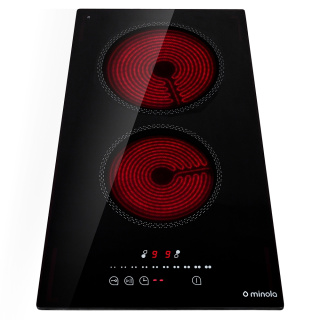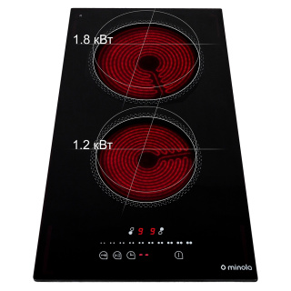 Варильна поверхня склокерамічна Domino, матеріал - склокераміка Kanger, колір-чорний, ширина - 30см, 2 зони Hi-Light (Ø165 мм-1200Вт, Ø200 мм 1800 Вт), 9 ступенів потужності, сенсор-слайдер, індикатор залишкового тепла, фронтальне розташування панелі управління. Основні характеристики Склокерамічна варильна поверхня Minola MHS 3045 має 2 конфорки технології Hi-light, яка дозволяє їм нагріватися протягом 10 секунд і економити Ваш час в процесі приготування їжі. Матеріал виготовлення Варильна електрична поверхня Minola MHS 3045 виготовлена з використанням склокераміки Kanger, яка відрізняється своєю стійкістю до перепадів температур і механічних пошкоджень. Панель управління Варильна поверхня Minola MHS 3045 оснащена сенсорною панеллю управління, на якій розміщені сенсори ввімкнення та вимкнення приладу, блокування та вибору зони нагріву, а також сенсор-слайдер для перемикання швидкостей роботи поверхні та налаштування часу роботи таймеру. Безпека Панель обладнана функцією захисту від переливу, яка також вимикає прилад в разі потрапляння рідини на панель управління і захистом від дітей, яка поставить блокування на панель управління, щоб ваші маленькі помічники не змогли змінити налаштування приготування. Крім того, робоча поверхня оснащена функцією автоматичного вимкнення, а також функцією блокування поверхні.