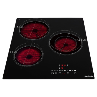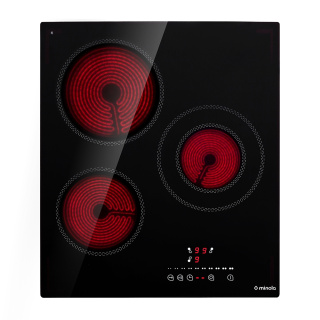 При купівлі склокерамічної варильної поверхні Minola у нашому офіційному інтернет-магазині: MINOLA, фірмовий скребок для догляду за склокерамікою — у подарунок. Основні характеристики Склокерамічна варильна поверхня Minola MHS 4235 має 3 конфорки технології Hi-light, яка дозволяє їм нагріватися протягом 10 секунд і економити Ваш час в процесі приготування їжі. Крім того, Minola MHS 4235 оснащена однією конфоркою із зоною розширення. Матеріал виготовлення Варильна електрична поверхня Minola MHS 4235 виготовлена з використанням склокераміки Kanger, яка відрізняється своєю стійкістю до перепадів температур і механічних пошкоджень. Панель управління Варильна поверхня Minola MHS 4235 оснащена сенсорною панеллю управління, на якій розміщені сенсори ввімкнення та вимкнення приладу, блокування та вибору зони нагріву, ввімкнення розширення конфорок, а також сенсор-слайдер для перемикання швидкостей роботи поверхні та налаштування часу роботи таймеру. Безпека Панель обладнана функціями захисту від переливу, яка також вимикає прилад в разі потрапляння рідини на панель управління і захистом від дітей, яка поставить блокування на панель управління, щоб ваші маленькі помічники не змогли змінити налаштування приготування. Крім того, робоча поверхня оснащена функцією автоматичного вимкнення, а також функцією блокування поверхні.