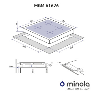 Основні характеристики У газовій поверхні на металі Minola MGM 61626 WH гармонійно поєднані елегантність і практичність. Модель обладнана 4-ма конфорками різної потужності, а її ширина складає 60 см. Завдяки своєму універсальному розміру вона легко монтується в стільницю на кухні. Важливою деталлю цієї моделі є наявність WOK-конфорки з двома рядами полум'я, яка дозволяє готувати страви набагато швидше. Крім цього, дана конфорка підходить для приготування страв за рецептами азійської кухні. За допомогою цієї поверхні Ви зможете радувати близьких незвичайними стравами. Оформлення і дизайн Варильна поверхня обрамлена чіткими рівними лініями двох чавунних решіток. Цей матеріал довговічний і легко очищується від залишків після приготування їжі. Minola MGM 61626 WH білого кольору добре вписується в кухонний інтер'єр, доповнюючи його та грамотно розставляючи акценти. Якість Газова поверхня Minola MGM 61626 WH виготовлена з металу, який відрізняється жароміцністю та стійкістю до корозії. Окрім того, емаль з ефектом білого глянцю має привабливий та естетичний вигляд, що прийдеться до душі будь-якому кулінару. Безпека При виборі газової варильної поверхні варто враховувати багато моментів, і один з найважливіших - безпека. Дана модель обладнана функцією «газ-контроль», тож, якщо раптом відбувається загасання полум'я в конфорці, подача газу автоматично припиняється. Ця система безпеки запобігає витоку газу. Окрім того, у ручках управління передбачений автоматичний електропідпал — це зручно та безпечно. Щоб запалити конфорку, достатньо просто повернути ручку. Сірники та запальнички, які можуть спровокувати опіки, більше не знадобляться.