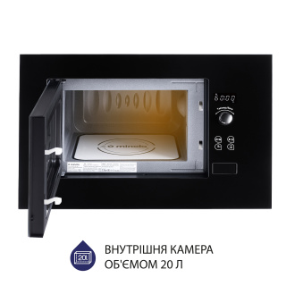 Розігрів без поворотного столу та 3D-нагрів У вбудованій мікрохвильовій печі Minola BWO 2011 WH втілені надсучасні технології! Система рівномірного розподілення мікрохвиль дозволяє розігрівати їжу без обертання на поворотному столі. У внутрішній камері мікрохвильовки забезпечується справжній 3D-нагрів, який зберігає у їжі вітаміни, мінерали та інші корисні речовини. При цьому витрачається мінімум електроенергії. Об’єм внутрішньої камери та антибактеріальне покриття Внутрішня камера моделі Minola BWO 2011 WH має об’єм 20 л. Продукти розташовуються не на тарілці, що обертається, а на нерухомій біокерамічній панелі. Це дозволяє поміщати у мікрохвильовку страви в посуді будь-якої форми. Відсутність поворотного столу забезпечує ідеально рівну поверхню, на якій не скопичуватиметься бруд і жир. Завдяки цьому догляд за мікрохвильовою піччю буде швидким та легким. Багатофункціональність та зручність у використанні Модель має 6 попередньо встановлених програм і 5 рівнів потужності. Це значно розширює можливості в приготуванні смачних страв. Окрім того, мікрохвильова піч обладнана таймером тривалістю до 60 хвилин: встановіть потрібний час приготування та займайтесь своїми справами, а коли страва буде вже готова, прилад сповістить вас за допомогою звукового сигналу. Сучасне сенсорне управління з поворотним перемикачем дозволяє легко користуватися мікрохвильовкою. Дисплей має підсвічування білого кольору – це фінальний штрих сучасного зовнішнього вигляду мікрохвильової печі Minola BWO 2011 WH. Кнопка відчинення дверцят дозволить вам інтуїтивно, одним легким рухом руки отримати доступ до робочої камери мікрохвильової печі. Приємним доповненням стане тарілка з кришкою-ковпаком і фірмова книга рецептів, що входять до комплектації. Оформлення та дизайн Відкрийте для себе нові можливості в організації свого кухонного простору! Завдяки стандартним розмірам дану мікрохвильову піч можна встановлювати над духовою шафою або навіть у верхній навісній шафі. Фасад мікрохвильовки Minola BWO 2011 WH оформлений загартованим склом білого кольору. Воно має стильний зовнішній вигляд, добре поєднується з іншими побутовими приладами, створює сучасний дизайн кухні як в світлих, так і у темних відтінках. Окрім візуальної привабливості, загартованому склу характерна висока стійкість до перепадів температур і механічних впливів.