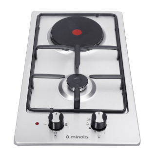 Варильна поверхня газо-електрична, ширина 30 см, колір сталевий, матеріал-нержавіюча сталь, 1 газова конфорка SABAF + 1 електрична швидкого нагріву, електрозапалювання в ручках управління, емальовані решітки з матовим покриттям, якісна кислотостійка нержавіюча сталь, витримує короткострокове підняття температури до 900 ° С, ручки управління з жароміцного матеріалу, розсікачі - 3 мм, жиклери (Made in France), фронтальна панель управління. Комбінована варильна поверхня Minola MKM 34013 оснащена однимгазовиміталійськипальником SABAF і одним електричним швидкого нагріву. Завдяки совій компактностіії легко розмістити у вас на кухні. Панель наділена функцією електрозапалювання в ручках управління - для вашої зручності в приготуванні страви. Ергономічне розташування пальників забезпечує додатковий комфорт при використанні декількох зон одночасно. Приготування страв паралельно на газу і електриці є одним з інноваційних способів. Так як цей спосіб буде не тільки зручним, ай раціональним - він буде заощаджувати не тільки ваш час, атакож електроенергію в будинку. Крім того великим плюсом будуть довговічні і стійкі до деформації емальовані решітки та термостійкі поворотні перемикачі з жароміцного полімеру. Вони легко знімаютьсята очищаються.