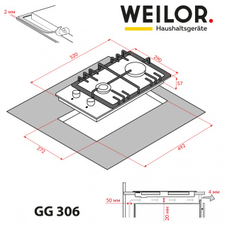Weilor – символ сучасного лаконічного дизайну та компактності Геометрія решітки варильної поверхні, виготовленої із високоякісного чавуну, ідеально доповнить інтер’єр вашого кухонного приміщення. Чавун дуже легко очистити від забруднень, які утворились в процесі приготування їжі. Регулятори управління з термостійкого пластику розроблені з дотриманням єдиної стилістики дизайну поверхні. Завдяки ергономічності панелі управління, поверхню комфортно та легко використовувати. Поверхні типу Domino відмінно підходять для створення індивідуальної конфігурації на кухні, яка відповідає вашим вподобанням і стилю приготування. Вони компактні, тому дозволяють грамотно використовувати кухонний простір. Також ви можете об'єднати кілька поверхонь Domino разом, щоб створити ідеальні умови для приготування своїх кулінарних шедеврів. Weilor – безкомпромісність у питаннях якості! Основа варильної поверхні – чорне загартоване скло. Його міцність у 5 разів вища, ніж у звичайного скла. Це забезпечує високу стійкість до механічного впливу. Крім того, цей матеріал має високий ступінь термостійкості. Функціональність техніки Weilor для забезпечення вашого комфорту Автоматичний електропідпал у ручках управління варильної поверхні спрацьовує одночасно з подачею газу та є найкомфортнішим і найбезпечнішим видом підпалу. Завдяки цьому, відмовившись від сірників та запальничок, вам легко вдасться унеможливити появу опіків. Ми піклуємося про вашу безпеку! Варильна поверхня WEILOR GG 306 BL обладнана системою безпеки «газ-контроль», яка автоматично блокує подачу горючої речовини за відсутності полум’я та забезпечує максимальну безпеку користування приладом. Дана функція запобігає витоку газу.