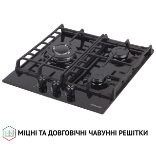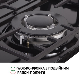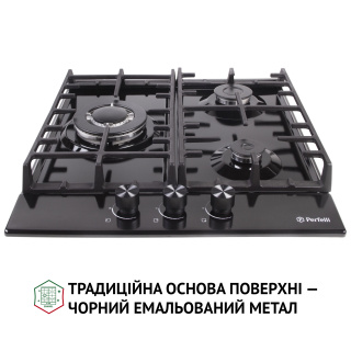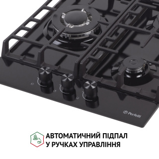 Основні характеристики Газова поверхня на металі Perfelli HGM 41627 I обладнана 3-ма конфорками різної потужності. Вона стане вашою надійною помічницею в приготуванні смачних страв. Компактна ширина забезпечує значну економію простору на вашій кухні. Варильна поверхня обладнана WOK-конфоркою з двома рядами полум'я, яка значно прискорить процес приготоування їжі. Також приназначенням такої конфорки є приготування страв азійської кухні. Тепер ви зможете частіше тішити своїх рідних незвичайними стравами. Дизайн Цікавий зовнішній вигляд поверхні нікого не залишить байдужим. Лінії двох чавунних решіток продумані таким чином, щоб на них комфортно розміщувалися кілька різних одиниць посуду одночасно. До того ж, подібний дизайн добре вписується в інтер'єр у скандинавському стилі та стилі лофт. Якість Перевагою моделі Perfelli HGM 41627 I є її економічність і довговічність. Якщо в процесі приготування їжі щось випадково википить, спеціальні бортики не дадуть рідині просочитися за краї, а саму поверхню ви зможете очистити легко й швидко. Варильна поверхня Perfelli HGM 41627 I виготовлена з високоякісної нержавіючої сталі AISI 304. Цей матеріал дуже стійкий до корозії, механічних пошкоджень та перепадів температур. Безпека Система "газ-контроль" розроблена для блокування подачі газу у разі згасання полум'я. Це забезпечує цілковитий захист від пожежі та отруєння газом. Автоматичний електропідпал вмикається в момент подачі газу при повороті ручок управління. Це найкомфортніший і найбезпечніший вид підпалу. Він дозволяє відмовитись від сірників та запальничок, повністю виключаючи ризик виникнення опіків.