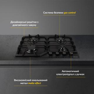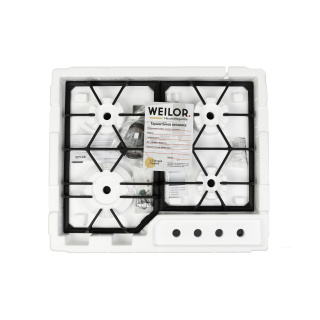 Weilor – символ функціональності та сучасності у кожній деталі Геометрія двох решіток варильної поверхні, виготовлених з високоякісного чавуну, ідеально доповнить інтер'єр вашого кухонного приміщення. Чавун легко очистити від забруднень, які утворилися в процесі приготування їжі. Ромбоподібні регулятори управління з термостійкого пластику розроблені з дотриманням єдиної стилістики дизайну поверхні. Завдяки ергономічності панелі управління, поверхню комфортно та легко використовувати. Німецька безкомпромісність у питаннях якості! Основа варильної поверхні – білий емальований метал. Цей матеріал має високу стійкість до корозії та температурних перепадів. Він є традиційним матеріалом для виготовлення кухонної техніки, а його якість та надійність перевірені роками. Функціональність техніки Weilor для забезпечення вашого комфорту Автоматичний електропідпал в ручках управління варильної поверхні спрацьовує одночасно з подачею газу та є найкомфортнішим і найбезпечнішим видом підпалу. Завдяки цьому, відмовившись від сірників та запальничок, вам легко вдасться унеможливити появу опіків. Ми дбаємо про вашу безпеку! Варильна поверхня WEILOR GM 604 WH обладнана системою безпеки «газ-контроль», яка автоматично блокує подачу горючої речовини за відсутності полум'я та забезпечує максимальну безпеку користування пристроєм. Ця функція запобігає витоку газу.