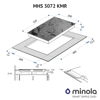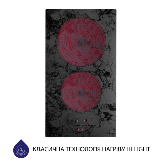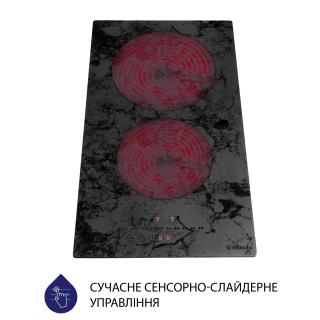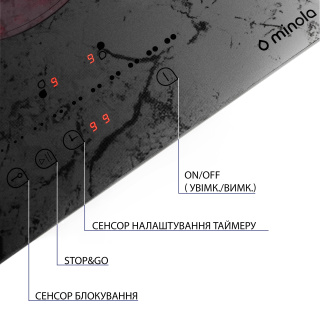 Основні характеристики Склокерамічна варильна поверхня Minola MHS 3072 KMR має 2 конфорки технології Hi-light, яка дозволяє їм нагріватися протягом 10 секунд і економити ваш час в процесі приготування їжі. Оформлення і дизайн Модель відрізняється ультрасучасним дизайном. Мармурова текстура поверхні чудово поєднується зі стільницею в аналогічному дизайні, створюючи єдине оформлення кухні — це робить її непомітною. Також таке дизайнерське рішення ідеально підходить для створення інтер'єру кухні в одному кольорі, наприклад, в чорному або білому. Так варильна поверхня стане яскравим акцентом. Матеріал виготовлення Електрична варильна поверхня Minola MHS 3072 KMR виготовлена з використанням склокераміки Kanger, яка відрізняється своєю стійкістю до перепадів температур і механічних пошкоджень. Панель управління Варильна поверхня Minola MHS 3072 KMR обладнана сенсорною панеллю управління, на якій розміщені сенсори ввімкнення та вимкнення приладу, блокування та вибору зони нагріву, а також сенсор-слайдер для перемикання швидкостей роботи поверхні та налаштування часу роботи таймеру. Безпека Для забезпечення вашої безпеки варильна поверхня Minola MHS 3072 KMR оснащена функцією захисту від переливу, яка автоматично вимикає прилад у разі потрапляння рідини на панель управління, та функцією захисту від дітей, яка заблокує панель керування, щоб ваші маленькі помічники не змогли змінити налаштування приготування. Крім того, робоча поверхня оснащена функцією автоматичного вимкнення, а також функцією блокування поверхні.