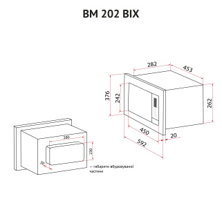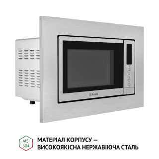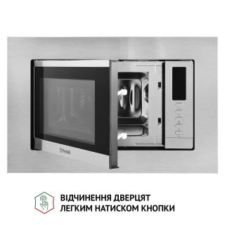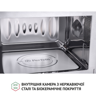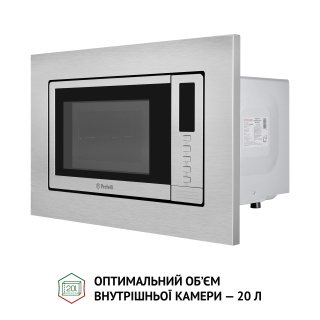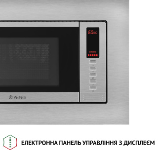 Готування без обертання та 3D-нагрівання Вбудована мікрохвильова піч Perfelli BM 202 BIX має чудовий вигляд, поєднуючи у собі високий функціонал та стильний сучасний дизайн. Завдяки системі рівномірного розподілення мікрохвиль вона рівномірно розігріває їжу без використання поворотного столу. Модель забезпечує справжнє 3D-нагрівання, зберігаючи в продуктах вітаміни, мінерали та інші корисні речовини, але витрачаючи мінімум електроенергії. Це інноваційні технології, які розроблені для вашої кухні. Простора внутрішня камера та біокерамічне покриття У внутрішній камері об’ємом 20 л продукти розміщуються не на тарілці, що обертається, а на нерухомій біокерамічній панелі. Це дозволяє поміщати у мікрохвильовку страви в посуді будь-якої форми та продукти досить великого розміру. Режими готування та додаткові функції У вашому розпорядженні шість попередньо встановлених програм: Звичайне готування використовується для швидкого розігріву страв і напоїв. Мікрохвильове готування з п’ятьма рівнями потужності дозволяє готувати будь-які страви. Розморожування дозволяє швидко та легко розморожувати продукти. Функція автоматичного розморожування за вагою продукту. Програма “Гриль”, яка має два рівні потужності на вибір. Під час готування у цьому режимі піч подає звуковий сигнал, коли прийшов час перевернути страву. Це забезпечує рівномірність просмаження страви, а також смачну підсмажену скоринку приємного золотистого кольору. Для готування з цим режимом ідеально підходить решітка для грилю, що входить до комплектації. Також у користуванні є режим “Комбі” у двох варіантах різної потужності, що надає ще більше можливостей у приготуванні страв. Мікрохвильова піч обладнана такими необхідними та зручними функціями, як: годинник, блокування від дітей, таймер тривалістю до 60 хвилин. Встановіть потрібний час приготування та займіться своїми справами, а пристрій за допомогою звукового сигналу сповістить вас, коли страва буде готова. Легкість у догляді Відсутність поворотного кола забезпечує ідеально рівну поверхню внутрішньої камери мікрохвильовки. Саме тому на ній не скопичуватиметься бруд і жир, а догляд за приладом буде максимально легким. Оформлення та дизайн Компактні розміри дозволять встановити цю мікрохвильову піч навіть у верхній навісній шафі. Це відкриває нові можливості організації простору на вашій кухні. Дизайн фронтальної панелі мікрохвильовкиPerfelli BM 202 BIX оформлений з використанням нержавіючої сталі та чорного загартованого скла. Це ідеальне поєднання матеріалів є запорукою міцності, надійності та довговічності конструкції. До того ж вона має приємний зовнішній вигляд,добре поєднується з іншими побутовими приладами, може створювати контраст з меблями світлих відтінків або ж ідеально доповнювати темний інтер'єр, неначе важливий елемент пазлу. Окрім того, загартованому склу властива висока стійкість до перепадів температур і механічних впливів. Також воно значно безпечніше, ніж звичайне скло. Сучасне електронне управління та кнопка відчинення дверцят Просте електронне керування з LED-дисплеєм, який має підсвічування червоного кольору, стане фінальним штрихом досконалого вигляду моделі Perfelli BM 202 BIX. Механічна кнопка відчинення дверцят дозволить вам одним легким рухом руки отримати доступ до робочої камери мі