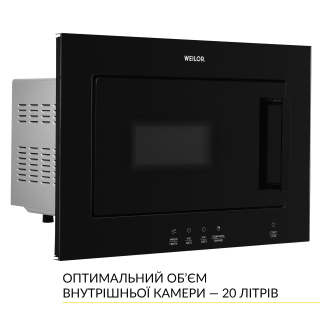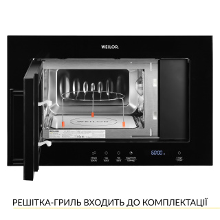 Рівномірний 3D-нагрів без поворотного столу Вбудована мікрохвильова піч WEILOR WBM 2041 GSS дивує своєю технологічністю та зручністю в експлуатації! Вона обладнана інноваційною системою рівномірного розподілу мікрохвиль, яка виключає необхідність використання поворотного столу для розігріву страв і продуктів. Розігрів у мікрохвильовій печі здійснюється за технологією 3D-нагріву, який не тільки рівномірно і без обертання прогріває вміст внутрішньої камери, а й забезпечує збереження в ньому всіх корисних речовин. При цьому піч економно витрачає електроенергію. Унікальний дизайн Мікрохвильова піч WEILOR WBM 2041 GSS – не тільки незамінна помічниця на кухні, а й її справжня прикраса. Встановити цю мікрохвильову піч можна в навісну шафу, завдяки її стандартним розмірам. Бездоганного вигляду їй надає високоякісне скло чорного кольору в поєднанні з нержавіючою сталлю. Ці матеріали досить стійкі до зовнішнього впливу, а також вражають своєю довговічністю та зносостійкістю. Загартоване скло чудово доповнить будь-який кухонний інтер'єр. Сучасне електронне управління Користуватися мікрохвильовою піччю WEILOR WBM 2041 GSS – дуже легко! Все це завдяки сучасній електронній панелі керування з LED-дисплеєм: лише одним дотиком ви можете змінювати доступні налаштування та встановлювати будь-які параметри приготування. Достатньо лише обрати один із запропонованих режимів, підібрати необхідну програму та розпочати процес створення своїх кулінарних шедеврів. LED-дисплей має біле підсвічування. Крім візуальної привабливості, воно забезпечує додатковий комфорт при використанні мікрохвильової печі. Таймер тривалістю до 60 хвилин із вимкненням та звуковим сигналом допоможе контролювати приготування страв та дозволить займатися іншими справами. Зуммер подасть сигнал, і ви почуєте, коли страва приготується. Функціональні особливості Мікрохвильова піч WEILOR WBM 2041 GSS – справді мультифункціональна модель. Вона має 5 рівнів потужності, що надає більше можливостей для створення кулінарних шедеврів. Пристрій налічує 6 встановлених програм: Автоматичне приготування Автоматичний розігрів Авторозморожування (швидке розморожування) Розморожування за вагою Розморожування за часом Швидкий розігрів І багато корисних функцій, таких як: Відстрочка старту (таймер) Годинник Захист від дітей (блокування приладу) Звуковий сигнал (зумер) Швидкий старт Дверцята легко відкриваються та закриваються за допомогою механічної ручки. Об'єм внутрішньої камери та антибактеріальне покриття Об'єм внутрішньої камери мікрохвильової печі WEILOR WBM 2041 GSS становить 20 л. Продукти розміщуються на біокерамічній панелі, яка знаходиться в нерухомому стані. Завдяки цьому в мікрохвильовій печі можна розігрівати і готувати страви будь-якої форми. Це особливо актуально для розморожування продуктів, які при заморожуванні набули незручної форми. Догляд за мікрохвильовою піччю даної моделі буде тільки в задоволення! Біокерамічна панель являє собою ідеально рівну та гладку поверхню, що виключає накопичення бруду та жиру у вигинах та щілинах внутрішньої камери. 3 аксесуари в комплектації У комплектацію цієї мікрохвильової печі входять: решітка-гриль мікрофібра для догляду за піччю фірмова книга рецептів